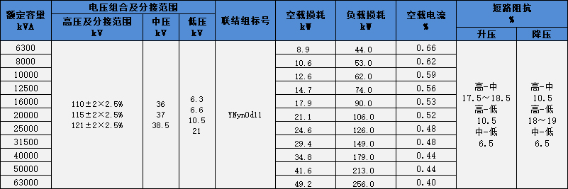 110kV級(jí) 11型三相三繞組無勵(lì)磁調(diào)壓電力變壓器